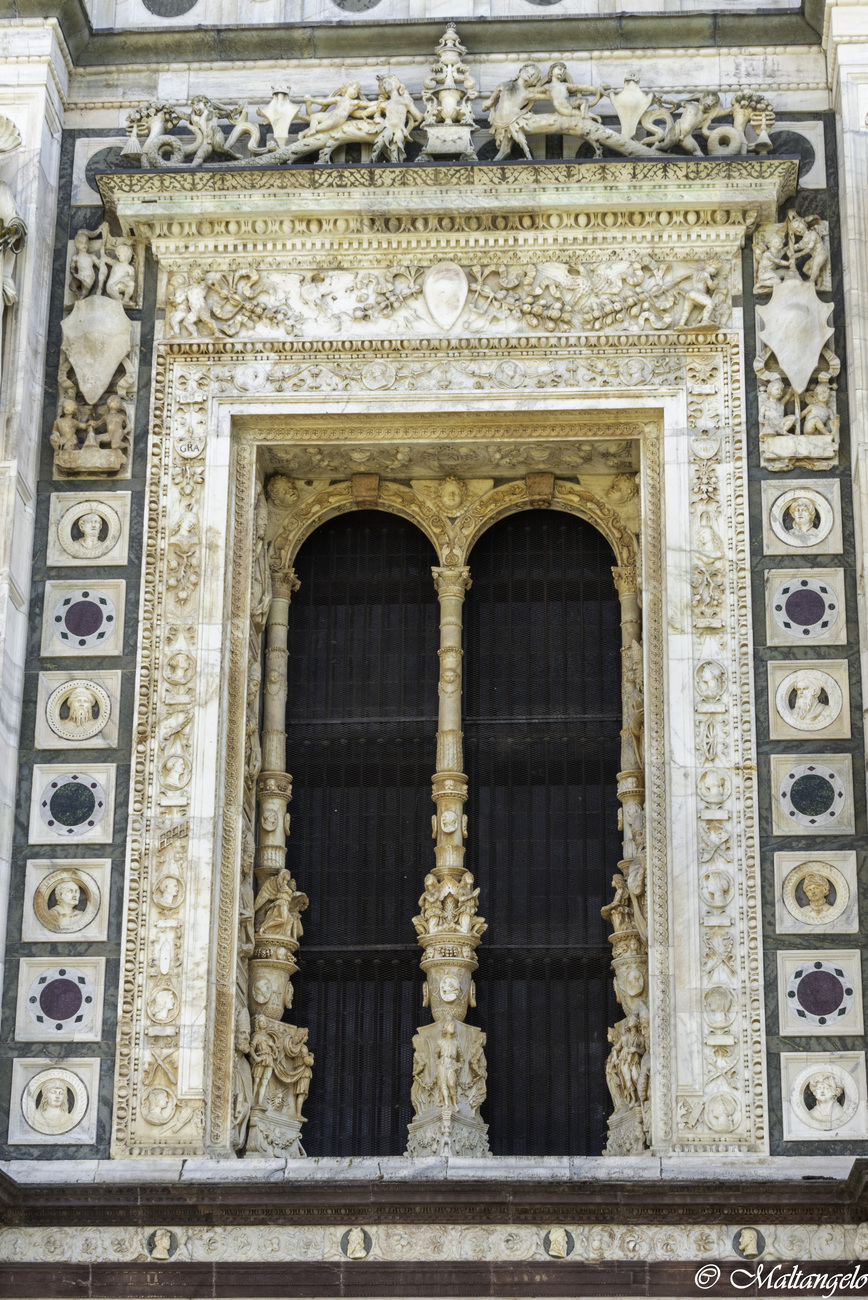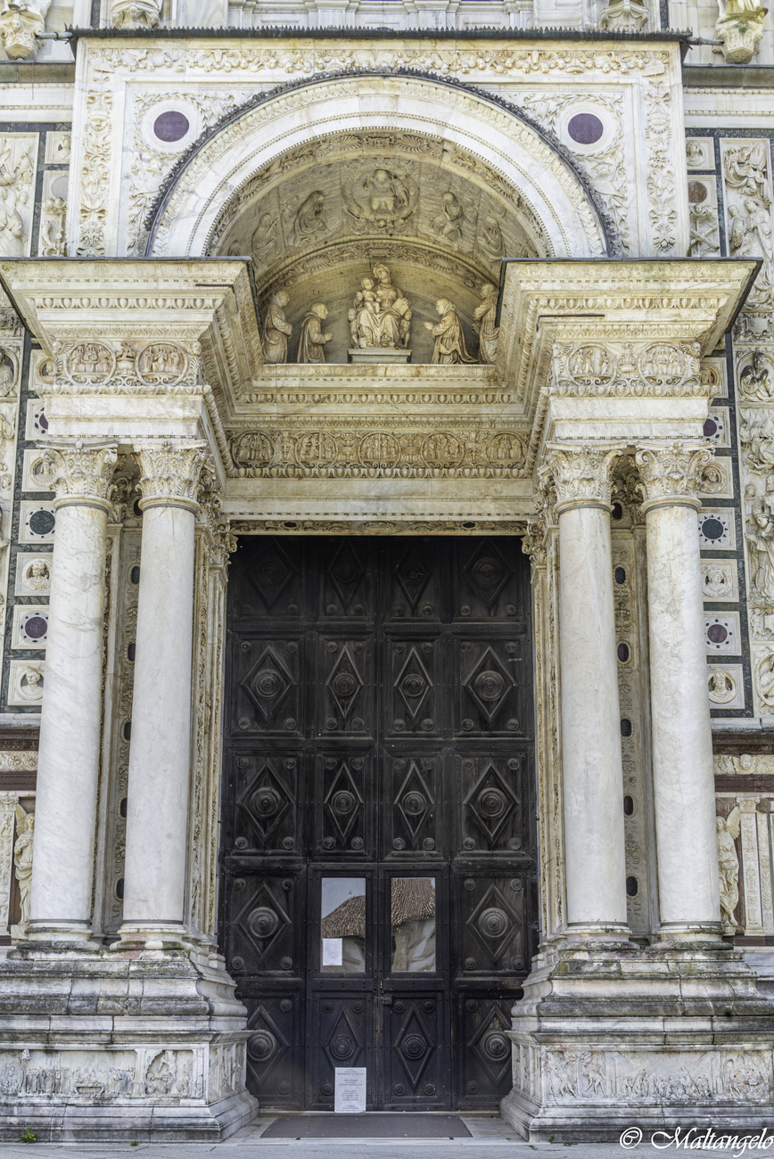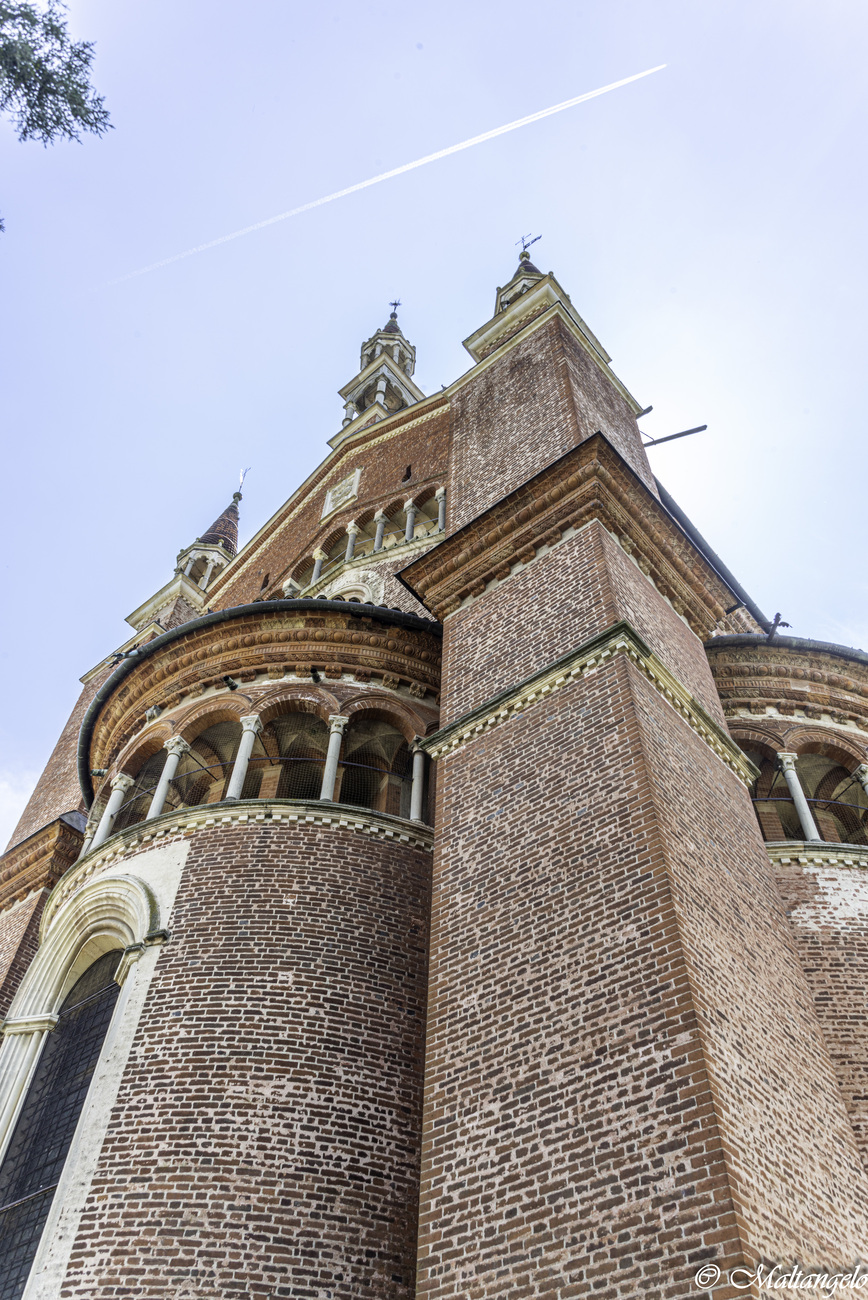 Edificata alla fine del XIV secolo per volere di Gian Galeazzo Visconti, primo duca di Milano, in adempimento al voto della consorte Caterina dell'8 gennaio 1390 e come mausoleo sepolcrale della dinastia milanese, fu completata in circa 50 anni e assomma in se' diversi stili, dal tardo-gotico italiano al rinascimentale.